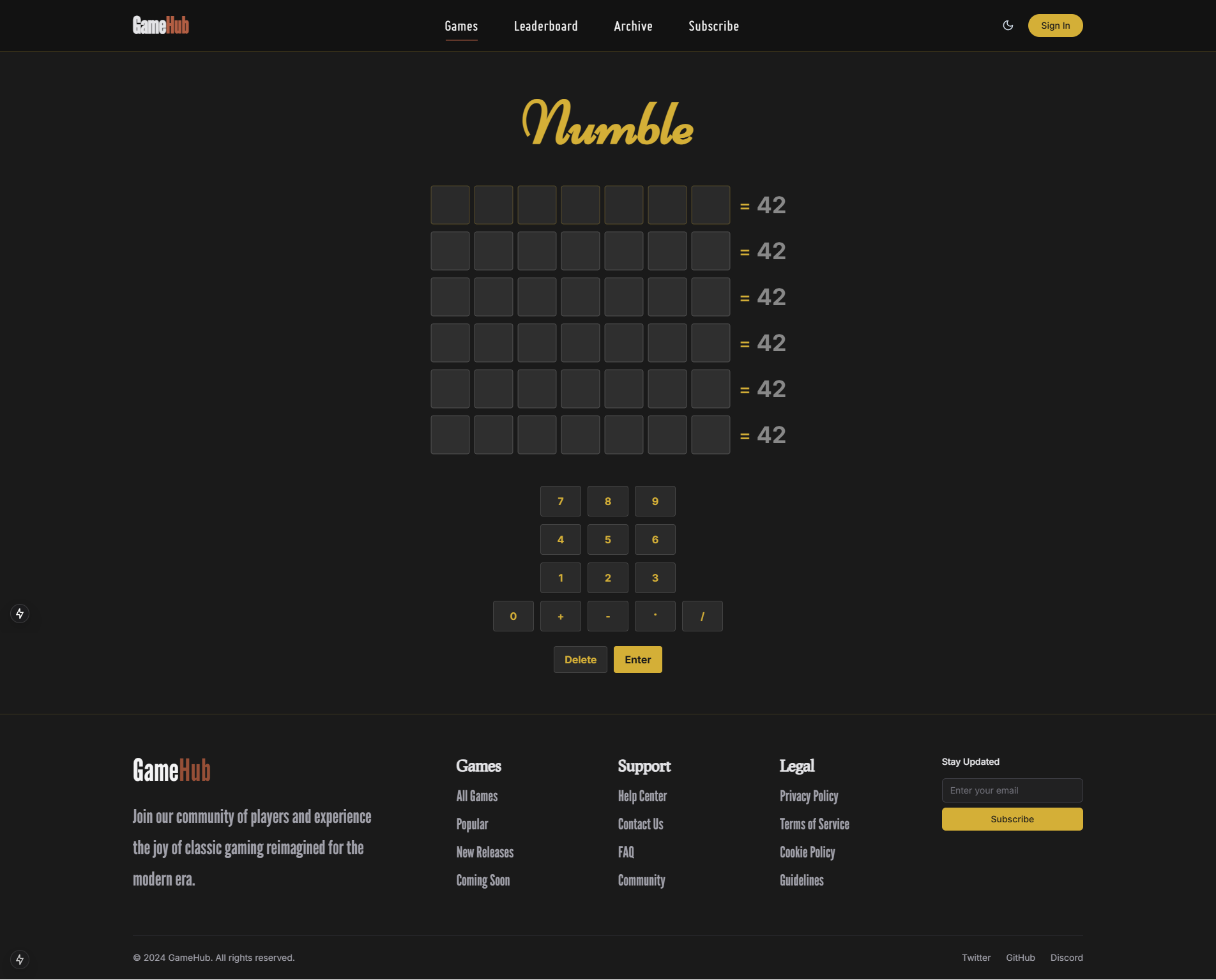 Contains 7 separate games with a focus on aesthetics. All games designed from scratch. Some games inspired by NYT Games. Built on Next.js + TailwindCSS.